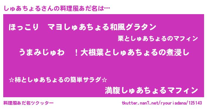 | 女子向けラノベタイトル風あだ名 | 『しゅあちょるの婚約者』 |