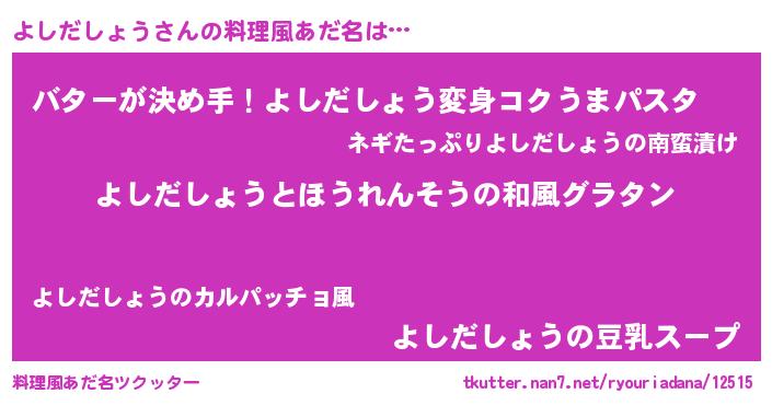 | 肩書あだ名 | 『よしだしょう中佐』『よしだしょう団長』 |