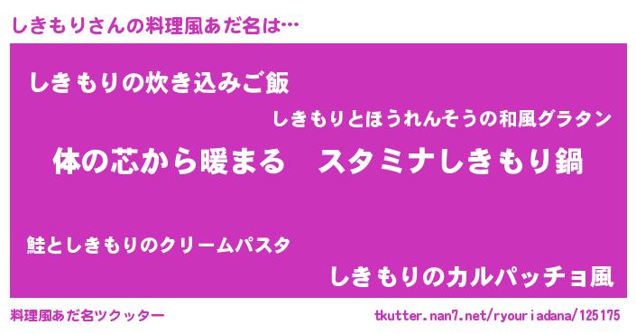 | 胡散臭い通販商品みたいなあだ名 | 『幸せが訪れる高級そうな皿…その名も「しきもり」』 |