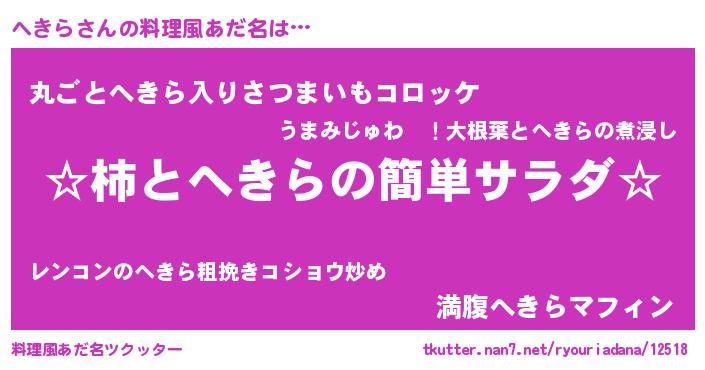 | 意味不明あだ名 | 『住所不定無職へきら(86歳)』『自称へきら』 |