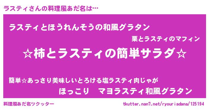 | 意味不明あだ名 | 『なめこ科ラスティ属』『自称ラスティ』 |