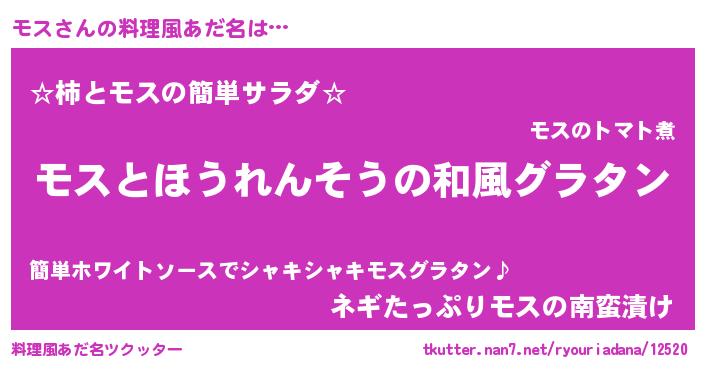 | 女子向けラノベタイトル風あだ名 | 『モスの玉の輿計画!』『モス様がみてる』 |