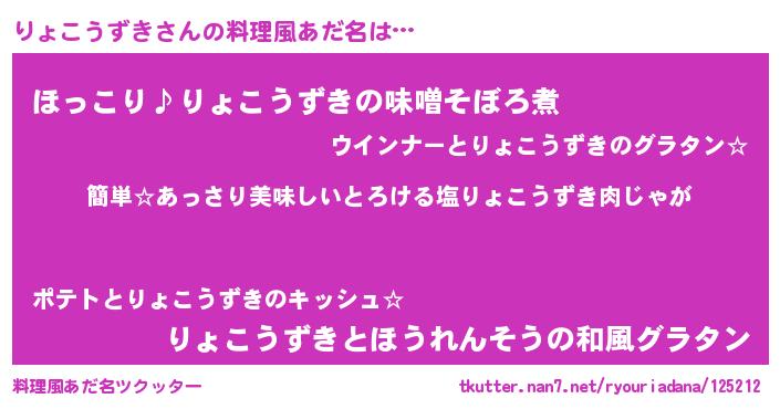 | 恥ずかしいあだ名 | 『りょちん』『プリティーりょこうずき』 |
