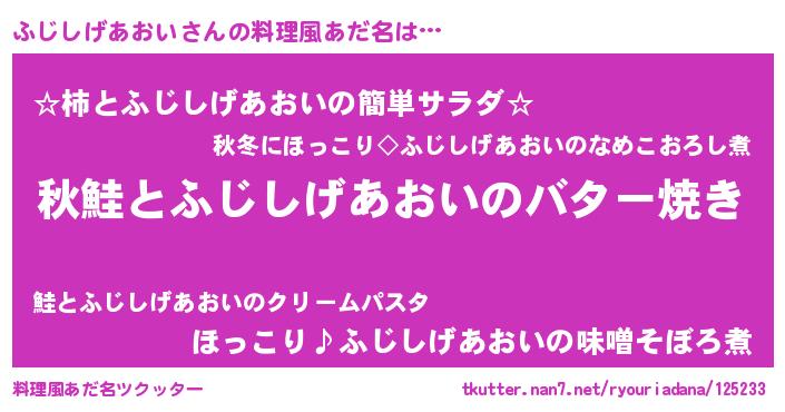 | ヘコむあだ名 | 『ふじしげあおい(苦笑)』『ふじにー』 |