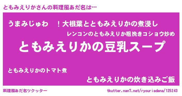 | ポケモン風あだ名 | 『ヒトモミエリカ』『トモミダネ』 |