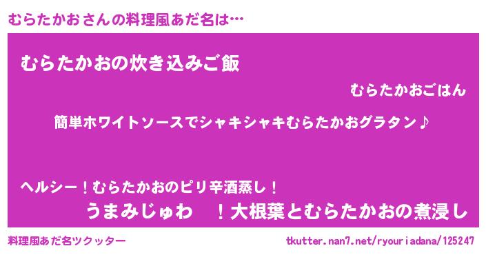 | ヒーロー風カッコイイあだ名 | 『天弓騎士ムラ』『最強戦士ムラタカオ』 |