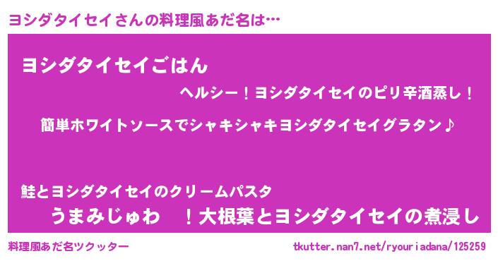 | ポケモン風あだ名 | 『ヒヨシダタイセイ』『ヨシキング』 |
