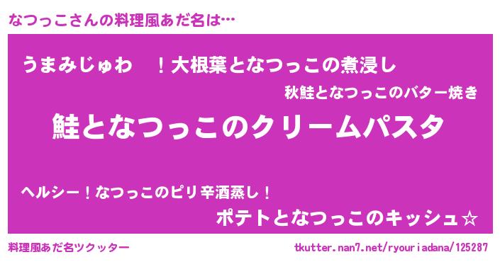 | 女子向けラノベタイトル風あだ名 | 『死神なつっこの再婚』『闇のなつっこ』 |