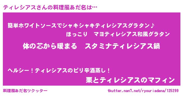 | 意味不明あだ名 | 『ティレシアスフォーエバー』 |