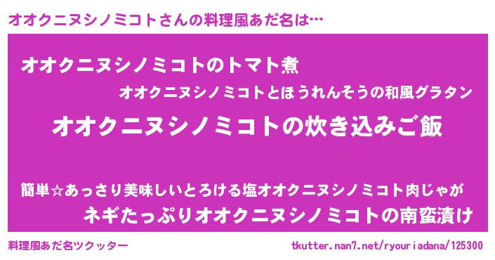 | 男性向けラノベタイトル風あだ名 | 『うちのオオクニヌシノミコトが世界を掌握している!』 |