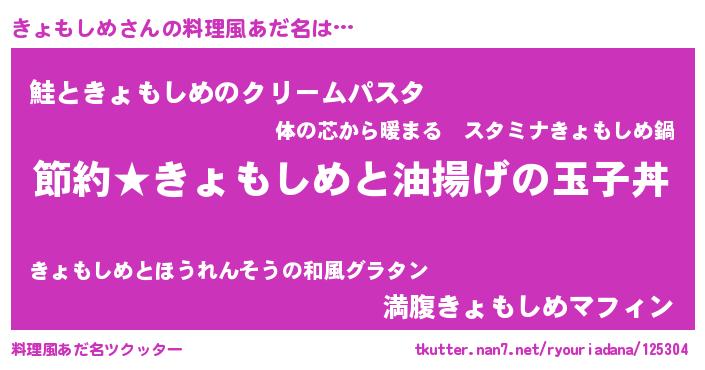 | 恥ずかしいあだ名 | 『プリティーきょもしめ』『きょちん』 |