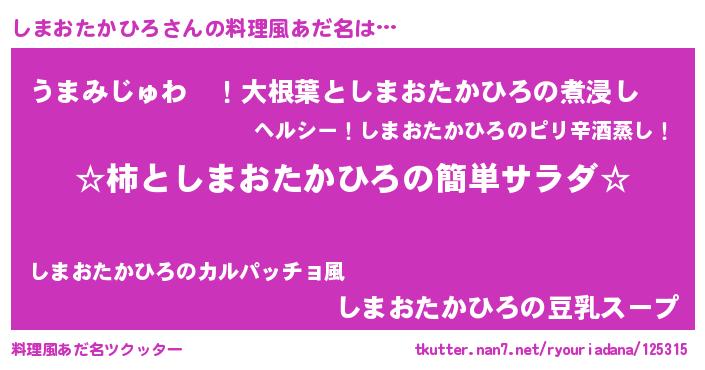 | 意味不明あだ名 | 『しまおたかひろフォーエバー』 |