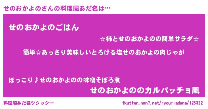| 胡散臭い通販商品みたいなあだ名 | 『前代未聞の健康食品…その名も「せのおかよの」』 |