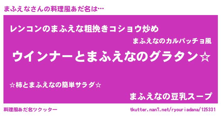 | ヘコむあだ名 | 『なまこ酢』『まふお』『まふふぇ~』 |