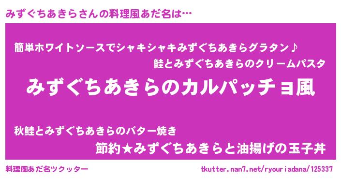 | 意味不明あだ名 | 『住所不定無職みずぐちあきら(6歳)』 |