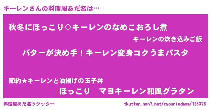 | 女子向けラノベタイトル風あだ名 | 『キーレン恋絵巻』 |