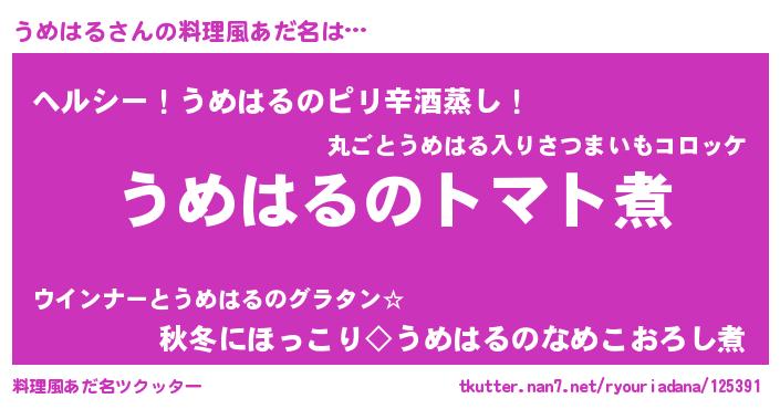 | 可愛いあだ名 | 『うめちゅっちゅ』『うめうちぇる』 |