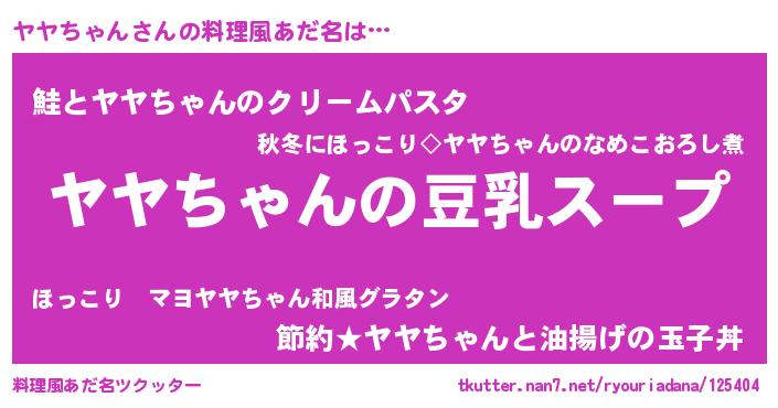 | 胡散臭い通販商品みたいなあだ名 | 『信頼と実績のサプリメント…その名も「ヤヤちゃん」』 |