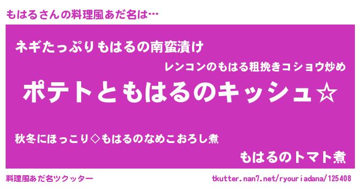| 男性向けラノベタイトル風あだ名 | 『もはるの嫁は女の子じゃないと思った?』 |