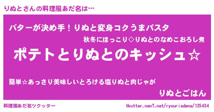 | 女子向けラノベタイトル風あだ名 | 『りぬとの卵を拾いまして』 |