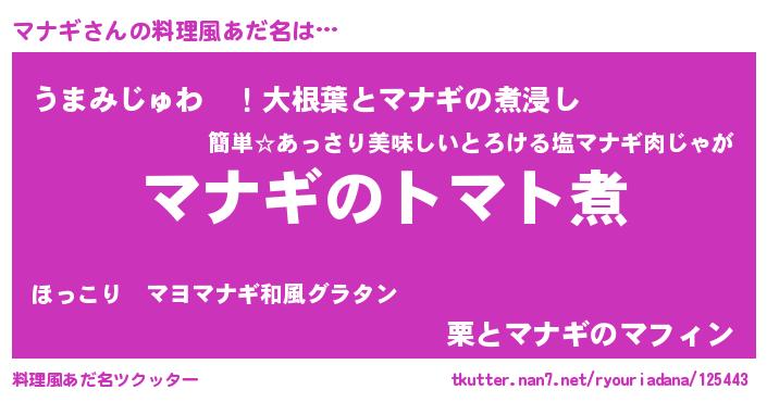 | ヘコむあだ名 | 『牛乳』『マナギ(笑)』『マナ太郎』 |