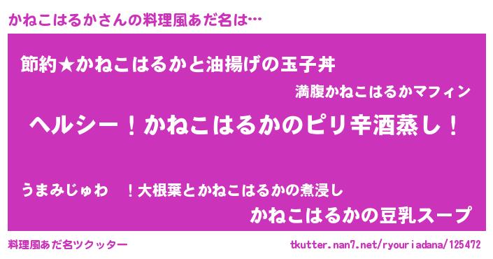 | 男性向けラノベタイトル風あだ名 | 『Re:かねこはるかから始める異世界生活』 |