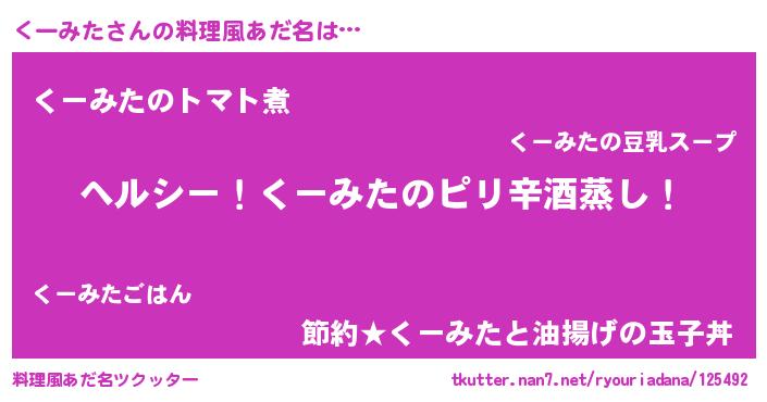 | 肩書あだ名 | 『くーみた総統』『くーみた助教授』 |
