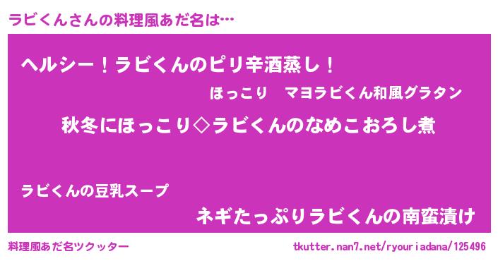 | 男性向けラノベタイトル風あだ名 | 『ラビくんに滅ぼされるだけの簡単なお仕事です』 |