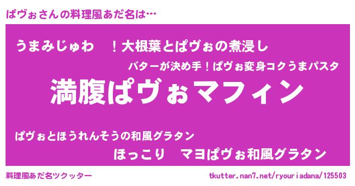 | 男性向けラノベタイトル風あだ名 | 『ぱヴぉという概念が存在しない退屈な世界 』 |