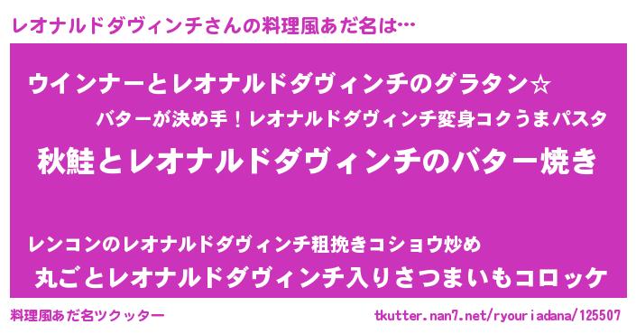 | 胡散臭い通販商品みたいなあだ名 | 『来世でも幸せになれる水素水…その名も「レオナルドダヴィンチ」』 |