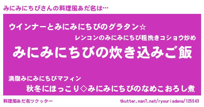 | ヘコむあだ名 | 『なまこ酢』『みにみにちび(苦笑)』 |