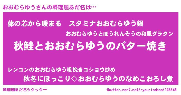 | 胡散臭い通販商品みたいなあだ名 | 『来世でも幸せになれる健康食品…その名も「おおむらゆう」』 |