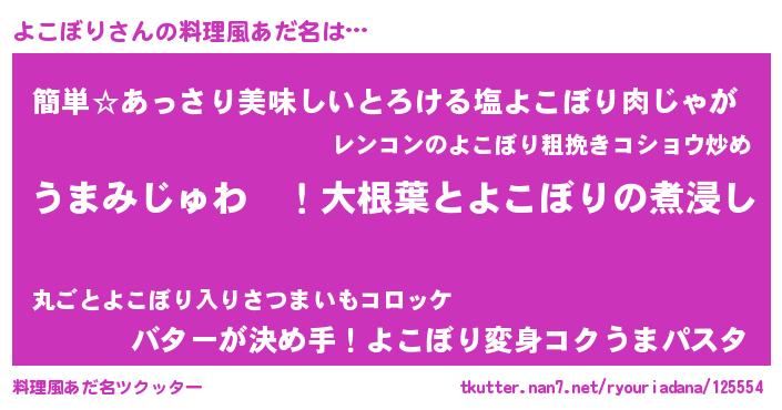 | 女子向けラノベタイトル風あだ名 | 『よこぼりの婚約者』『よこぼり恋絵巻』 |