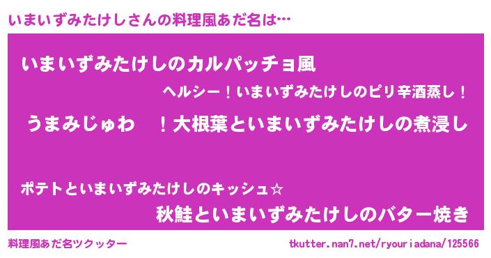 | 肩書あだ名 | 『いまいずみたけし総理大臣』 |