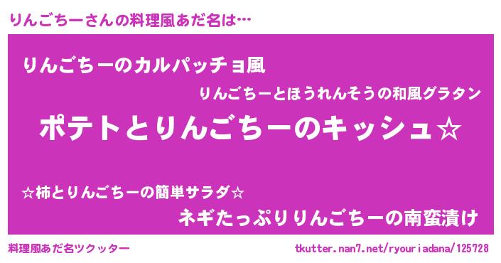 | 女子向けラノベタイトル風あだ名 | 『りんごちーの卵を拾いまして』 |