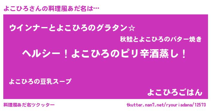 | 男性向けラノベタイトル風あだ名 | 『Re:よこひろから始める異世界生活』 |