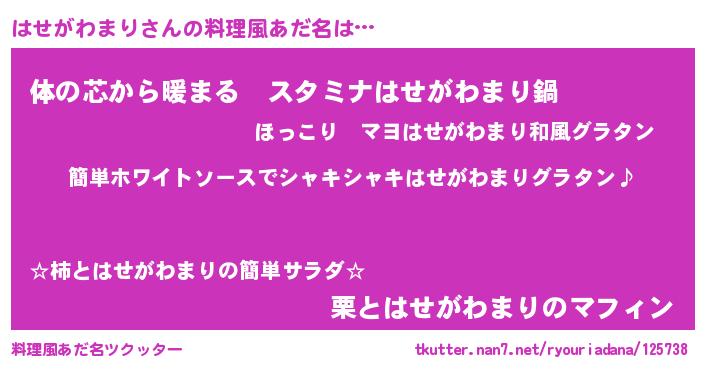| ポケモン風あだ名 | 『ヒハセガワマリ』『ハセガダネ』 |