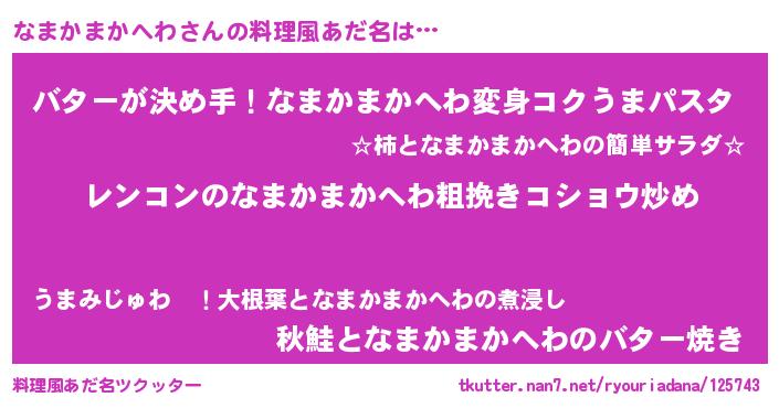 | ヘコむあだ名 | 『なまかまかへわ(笑)』『酢こんぶ』 |