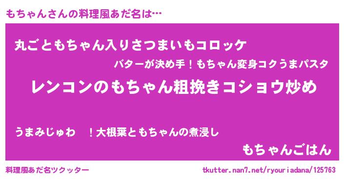 | 意味不明あだ名 | 『自称もちゃん』『めかぶ科もちゃん属』 |