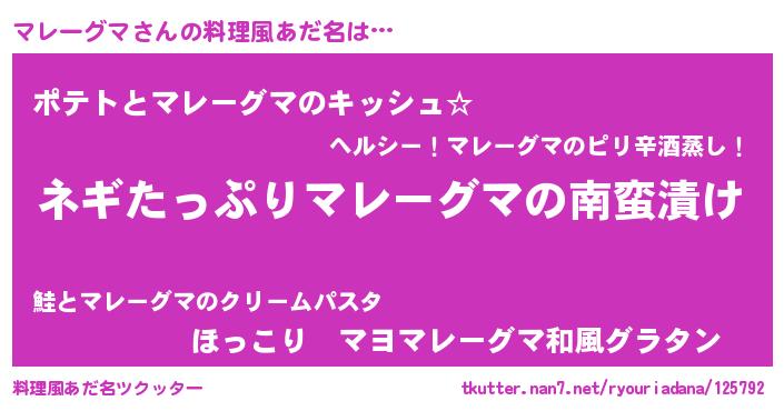 | ポケモン風あだ名 | 『マレチュウ』『ヒマレーグマ』 |