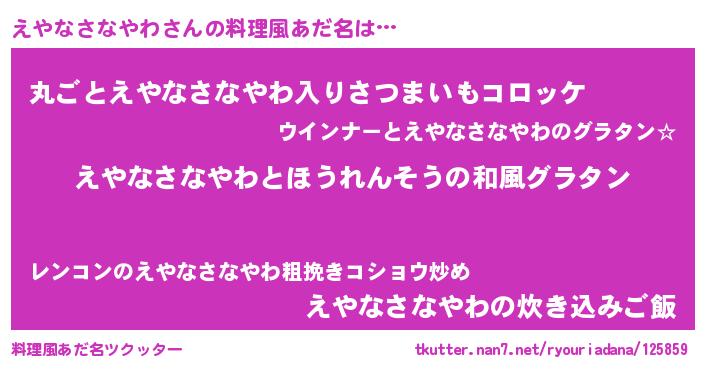 | 男性向けラノベタイトル風あだ名 | 『えやなさなやわ~年齢イコール彼女いない歴の魔法使い~』 |