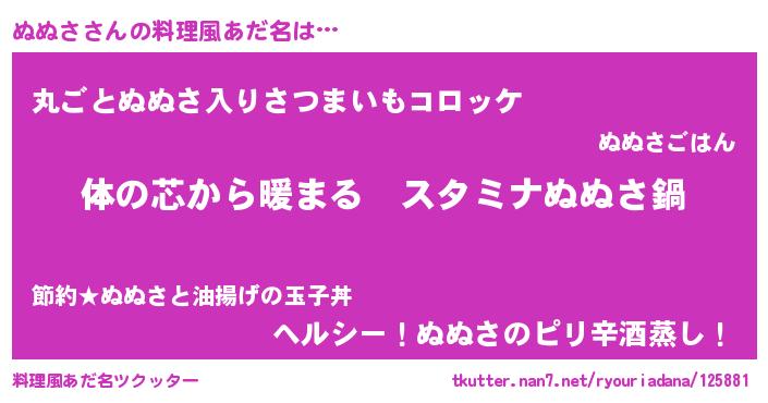 | ポケモン風あだ名 | 『ヌヌサダネ』『ヌーヌイ』 |