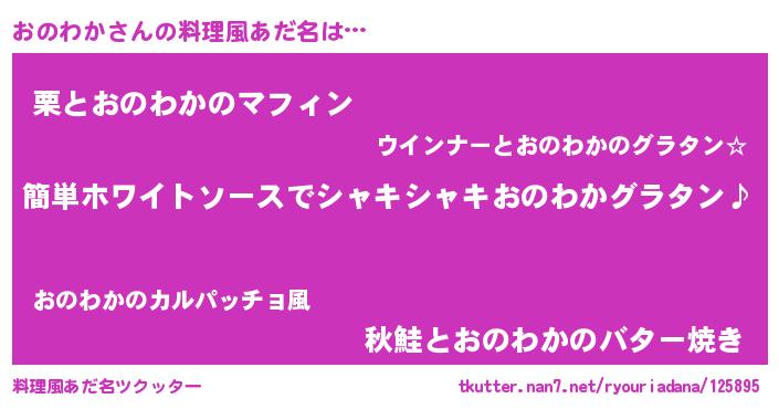 | 女子向けラノベタイトル風あだ名 | 『おのわか様がみてる』 |