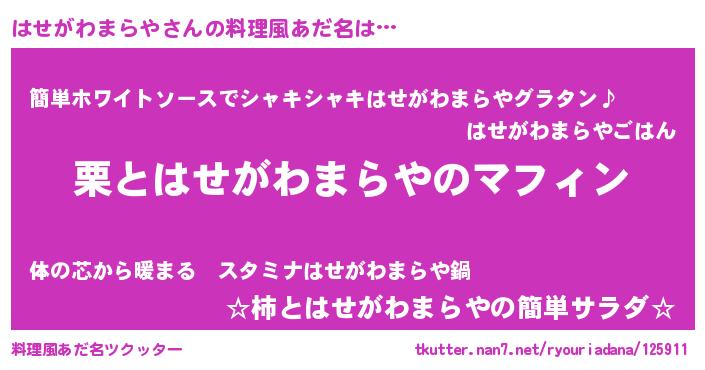 | 意味不明あだ名 | 『とにかく怪しいはせがわまらや』 |