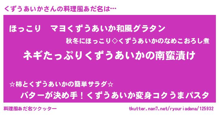 | 恥ずかしいあだ名 | 『プリティーくずうあいか』『くずちん』 |