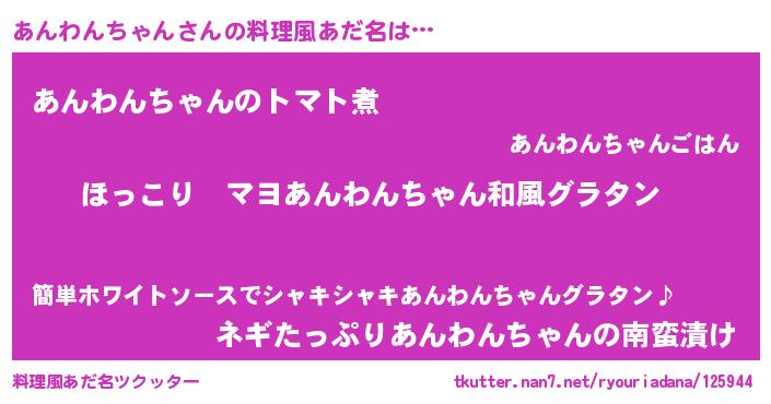 | 男性向けラノベタイトル風あだ名 | 『この素晴らしい世界にあんわんちゃんを!』 |