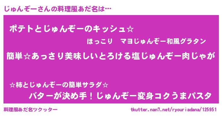 | ヘコむあだ名 | 『じゅんぞー(震え声)』『じゅ太郎』 |