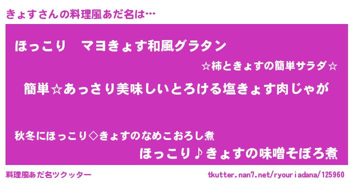 | ヒーロー風カッコイイあだ名 | 『ネオキョス』『仮面キョダー』 |