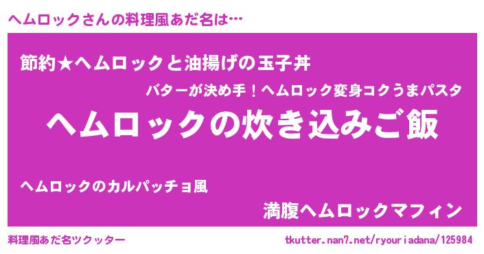 | 意味不明あだ名 | 『ペロリンヘムロック』『自称ヘムロック』 |
