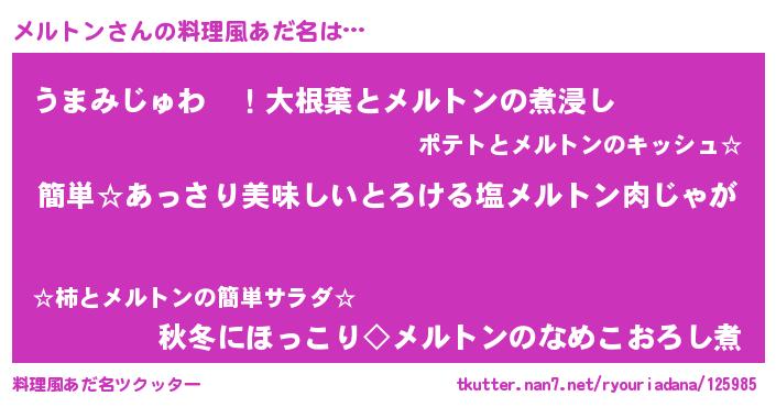 | ヘコむあだ名 | 『メルトン(震え声)』『酢こんぶ』 |
